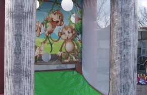 Super leuk spel! Gooi met de bananen door de gaten om de aapjes te voeren!