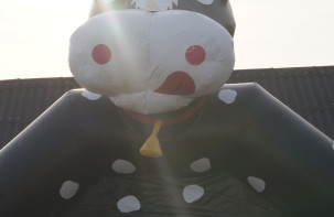 Springkussen Koe. Superleuk voor kinderen voor bijvoorbeeld een buurtfeest, bbq, kinderfeestje of verjaardag. Ook ideaal bij braderieën en markten.